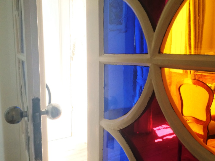 O quarto de charme é o quarto mais emblemático da casa, não só pela particularidade das suas portas com vitrais coloridos artesanais, bem como a mobilia de quarto clássico, intemporal.