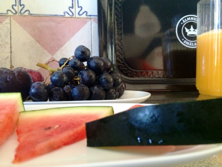 O pequeno almoço buffet é confeccionado com produtos frescos e naturais, incluindo frutas da época , colhidas da nossa quinta.
